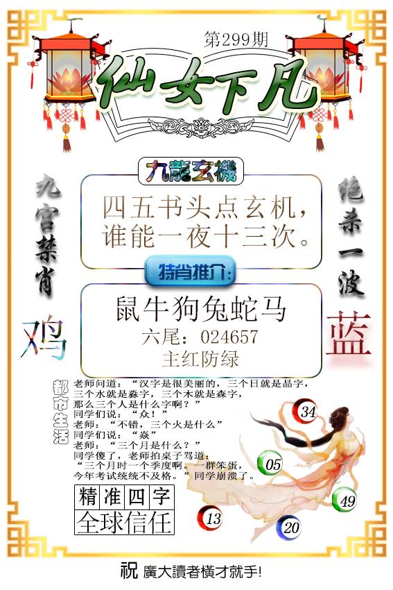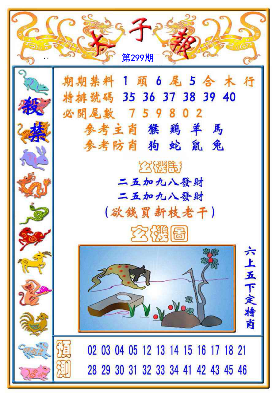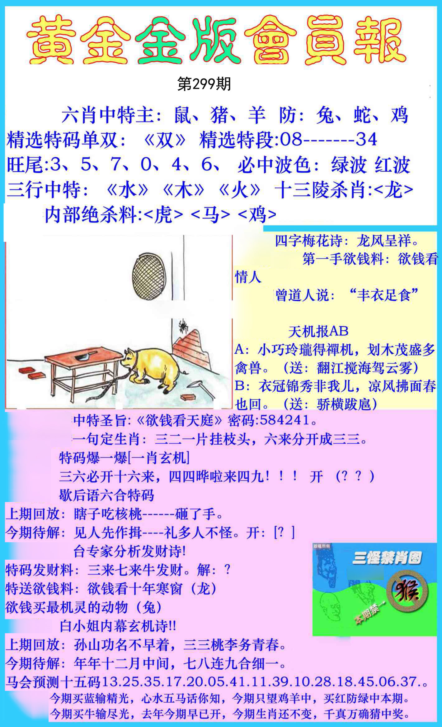 300期金牌⑥肖【狗猴龙鸡马鼠】开:猪31 |