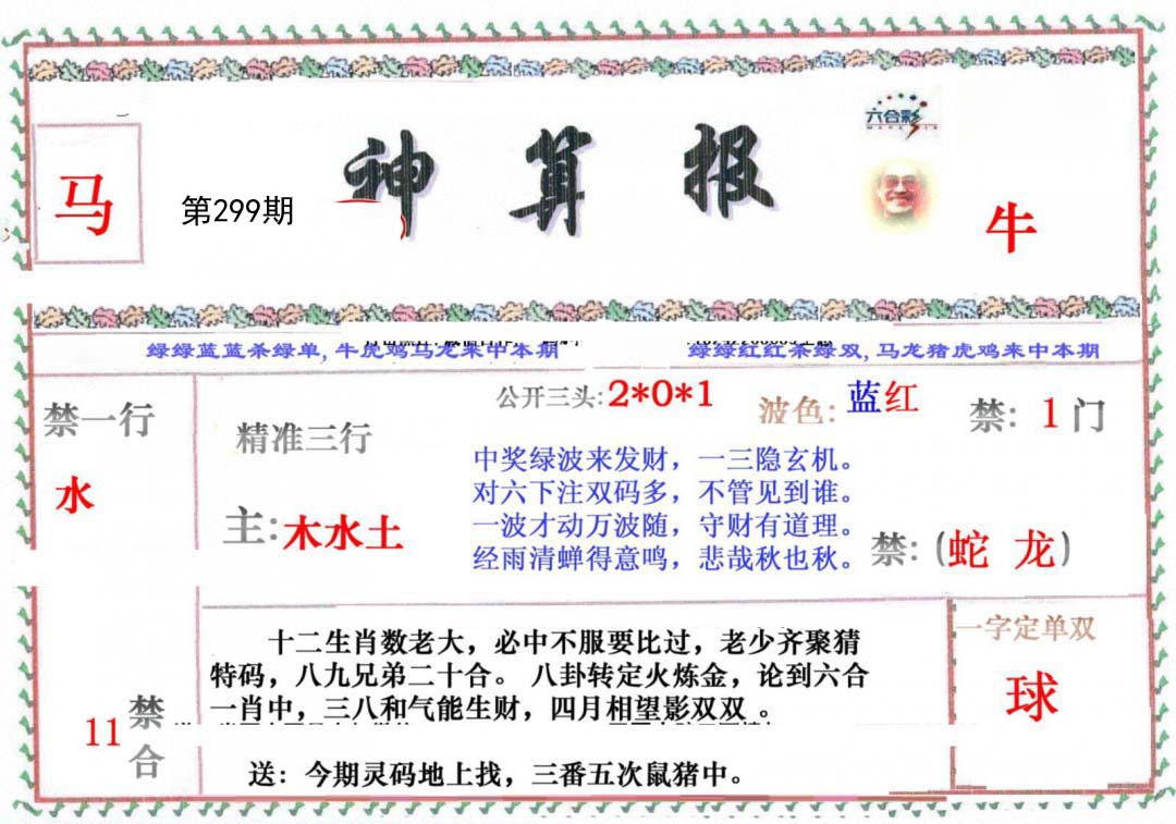 | 298期;绝杀【绿波】绝杀【1头】开:羊11 |