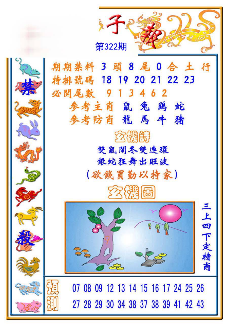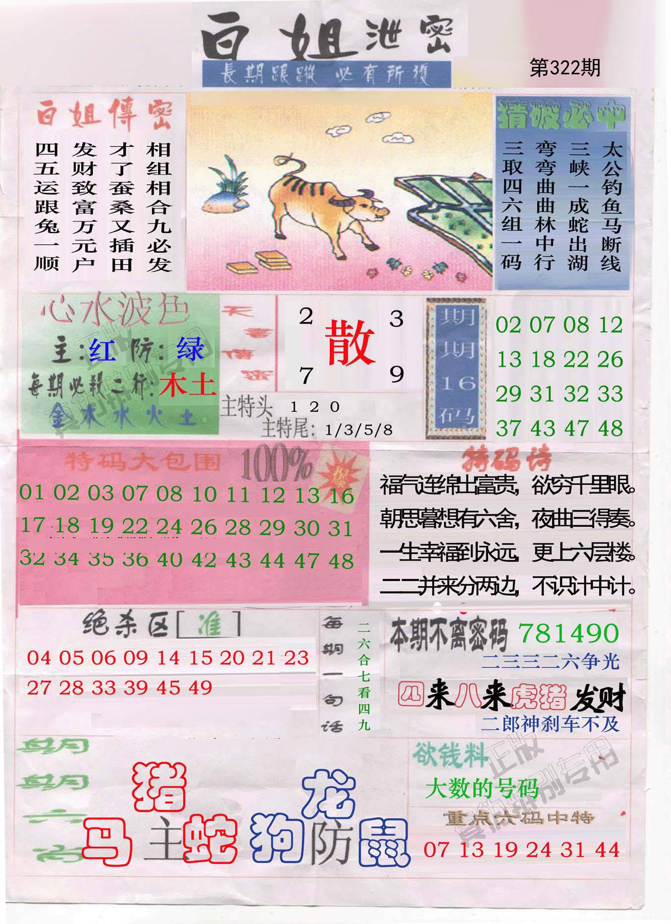 | 322期;绝杀【牛肖】绝杀【7尾】开:?00 |