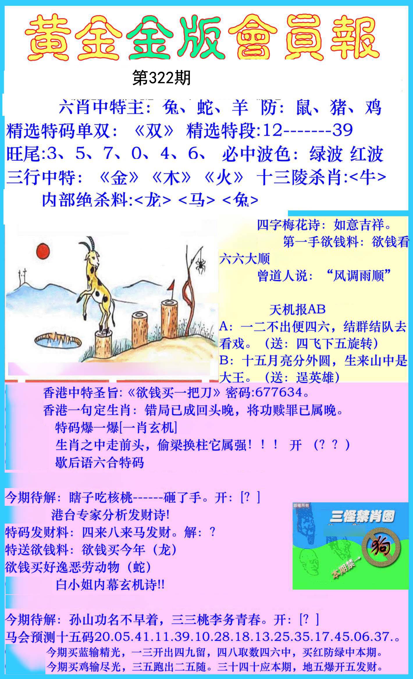 320期金牌⑥肖【猪马狗鼠牛兔】开:猪43 |