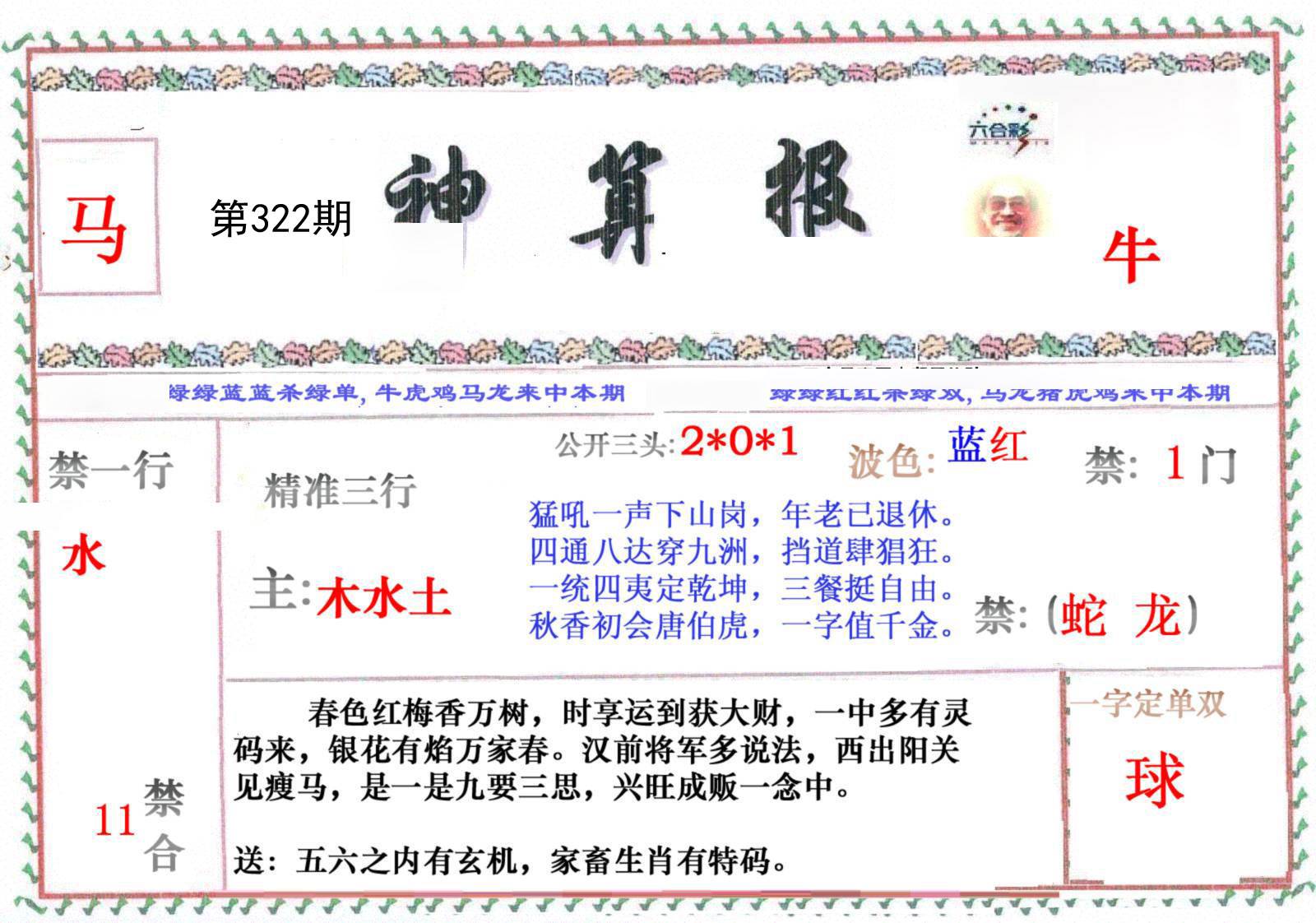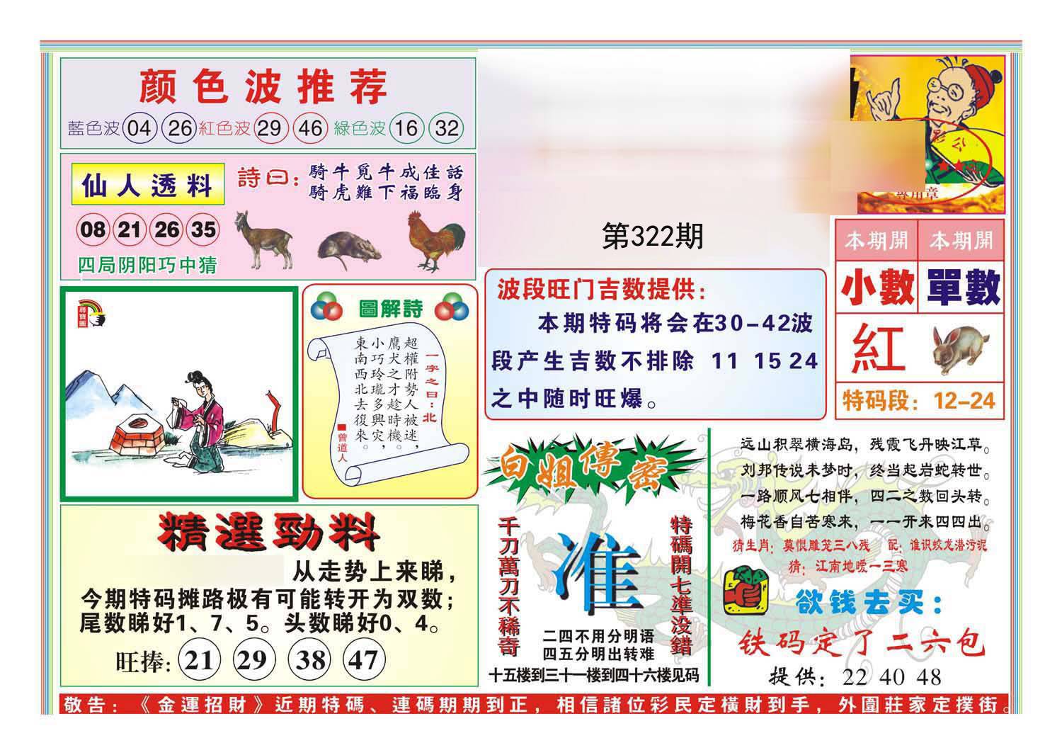 | 322期;绝杀【红波】绝杀【1头】开:?00 |