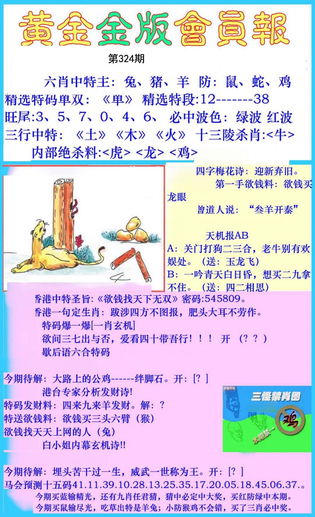 313期开:牛41 今期买猪羊输尽光, 看中4头1尾全不买 |