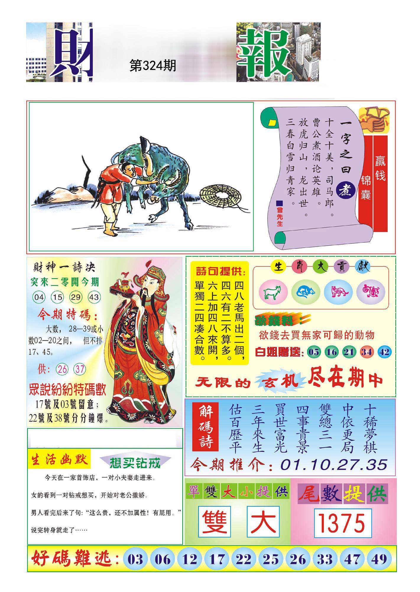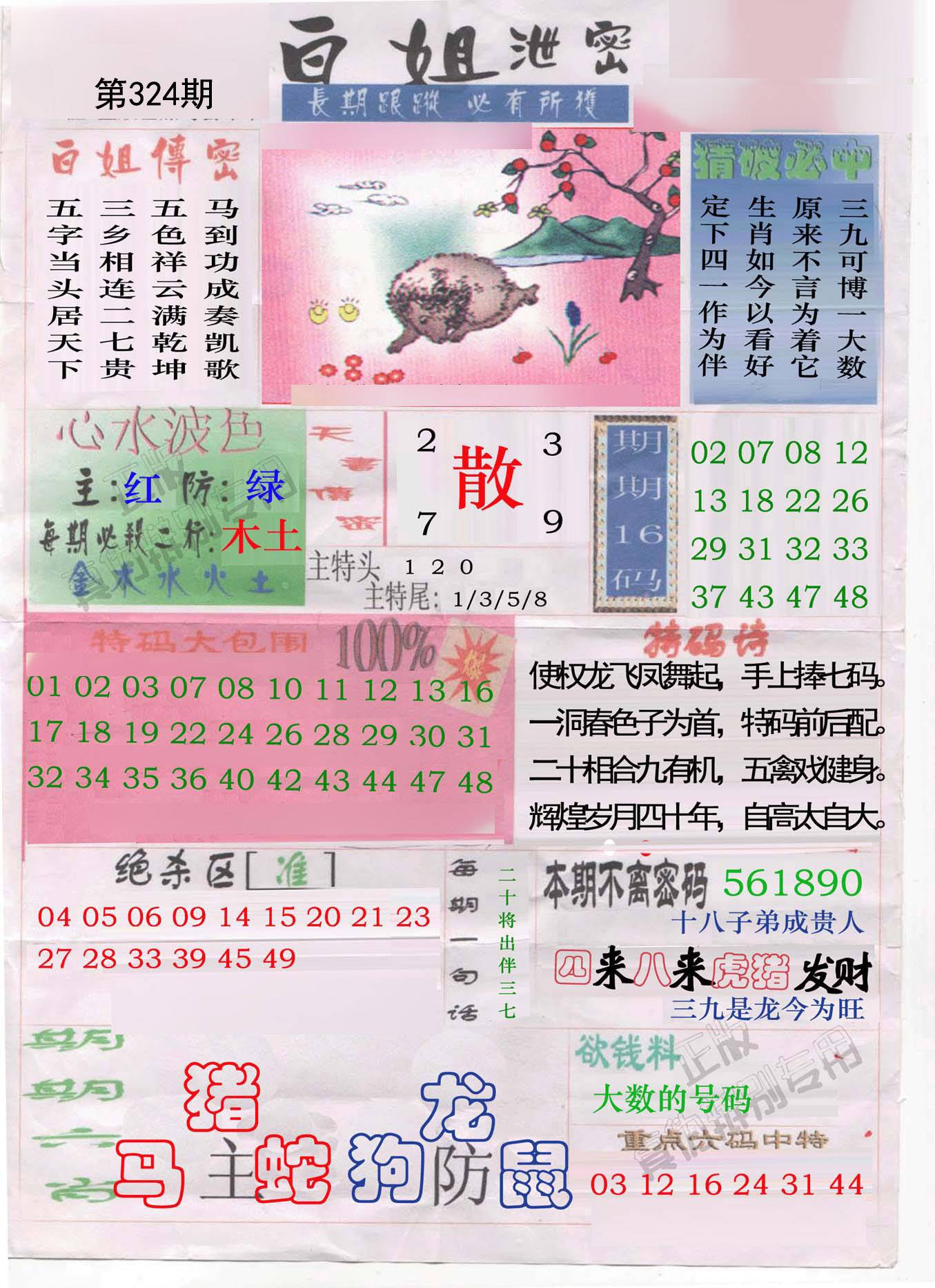 | 324期;平特①肖【虎虎虎】 |