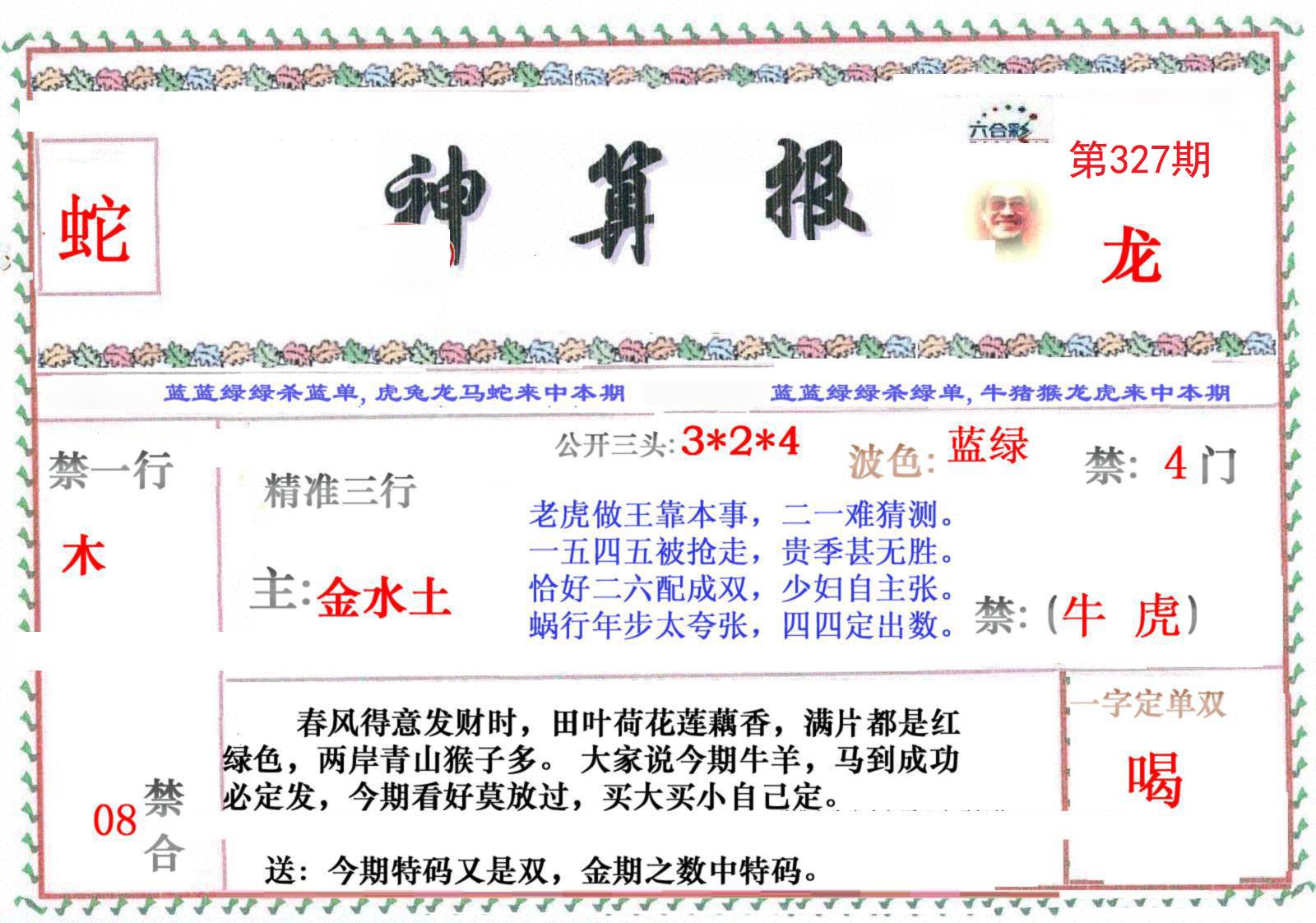 | 327期;绝杀【兔肖】绝杀【3尾】开:?00 |