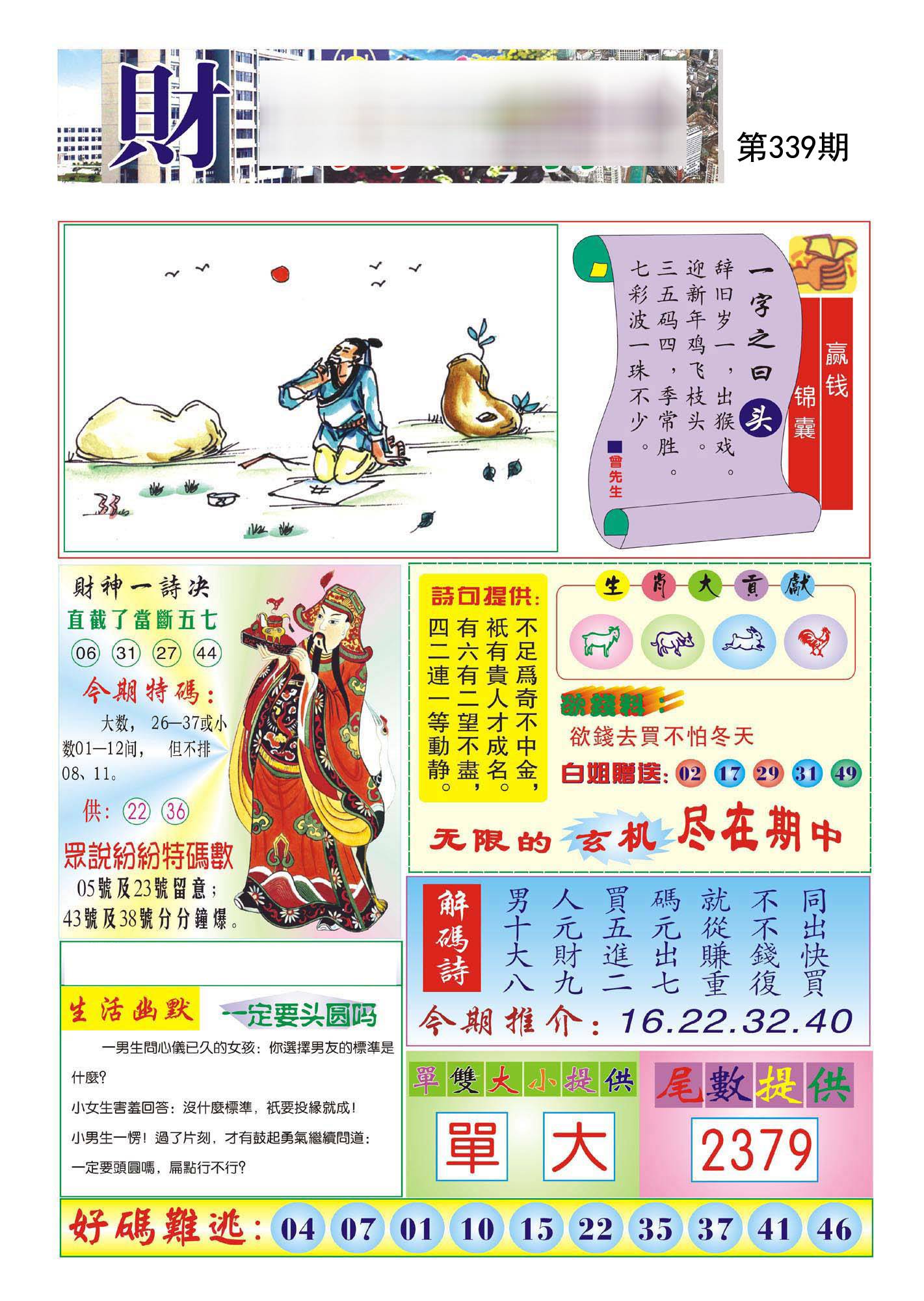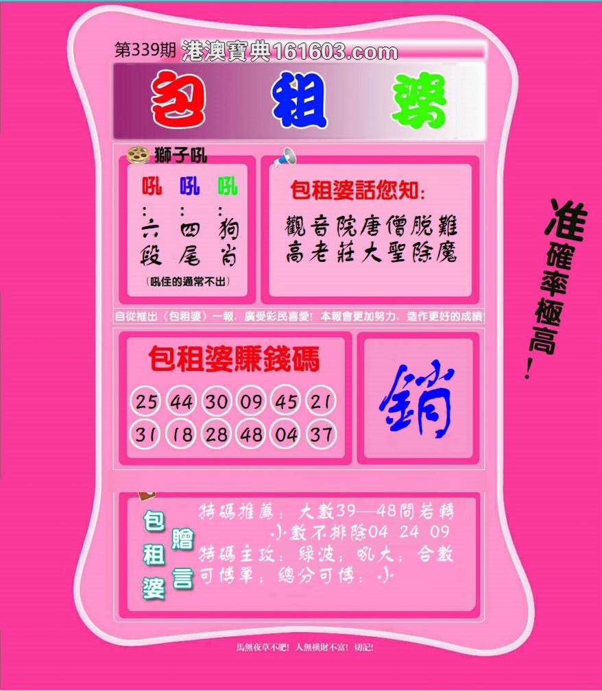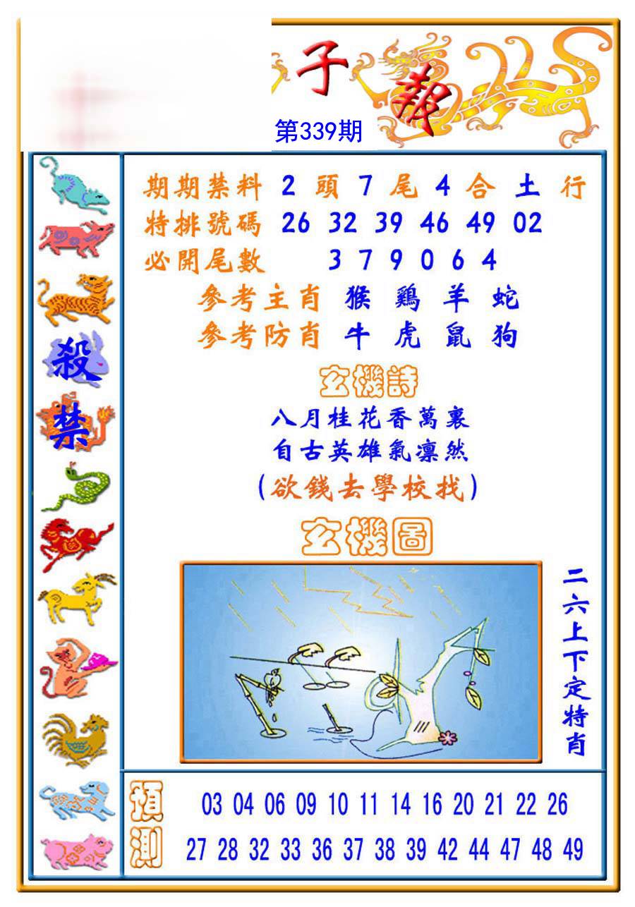 | 339期;绝杀【狗肖】绝杀【8尾】开:?00 |