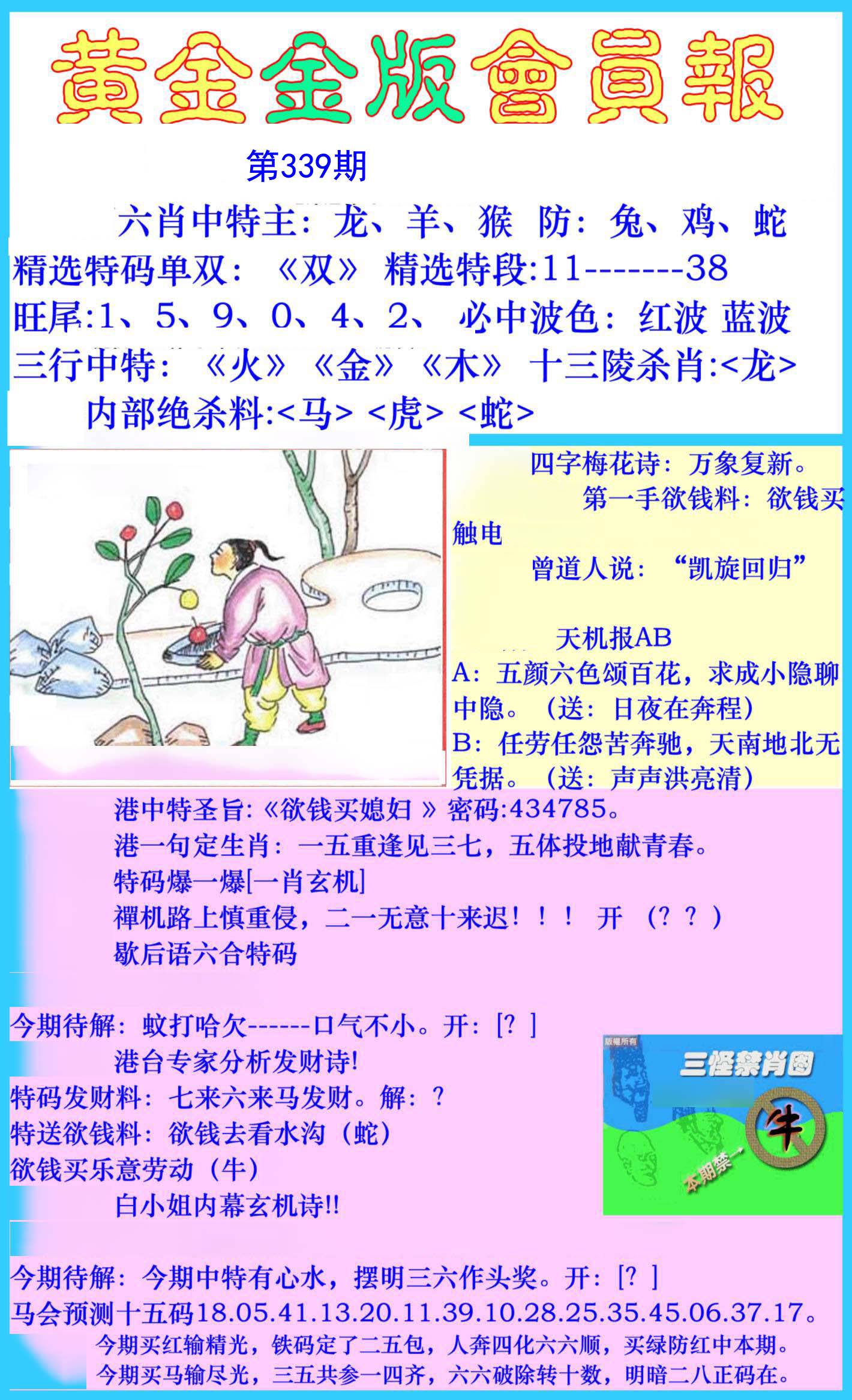 335期金牌⑥肖【猪羊马蛇龙牛】开:兔39 |