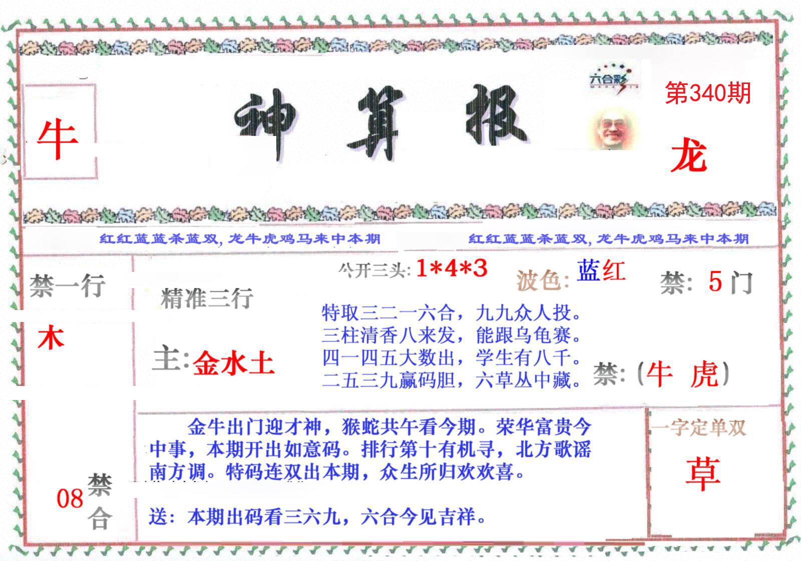 | 313期;绝杀【绿波】绝杀【4头】开:牛41 |