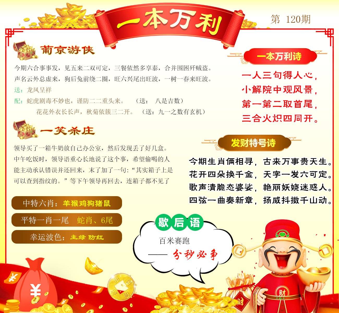 | 111期;绝杀【红波】绝杀【1头】开:兔40 |