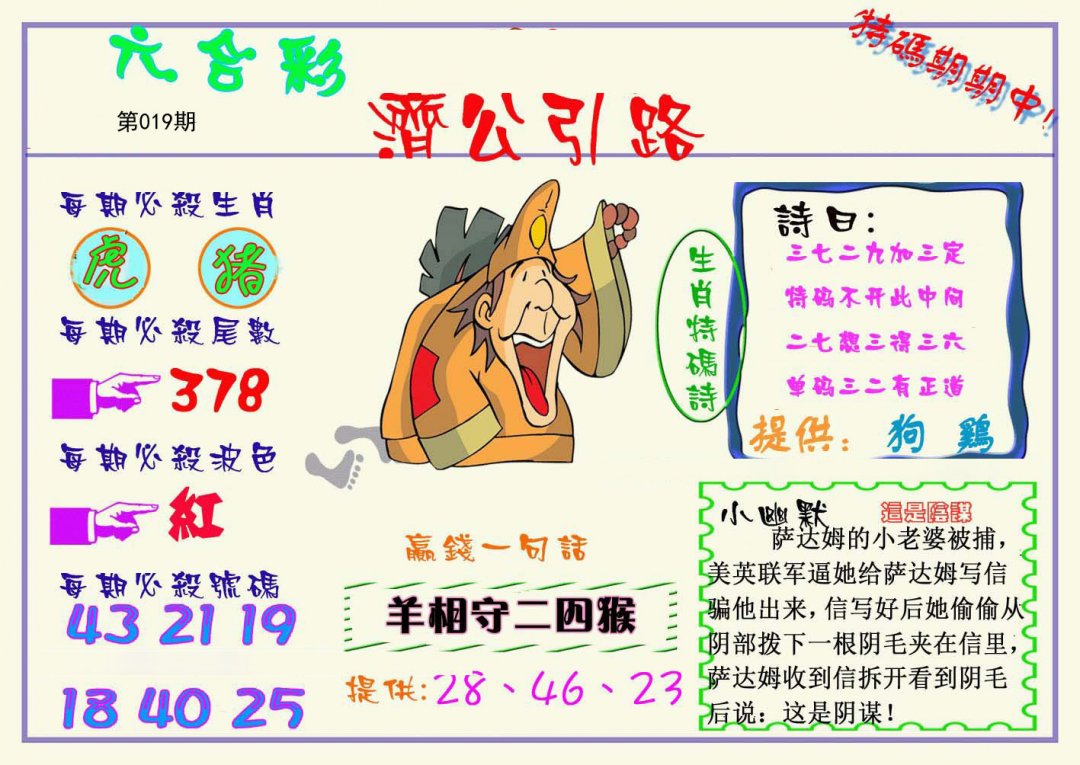 009期开:羊35 今期买鸡牛输尽光, 看中0头4尾全不买 |