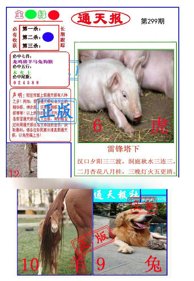 299期金牌⑥肖【羊兔猪鼠虎鸡】开:狗44 |