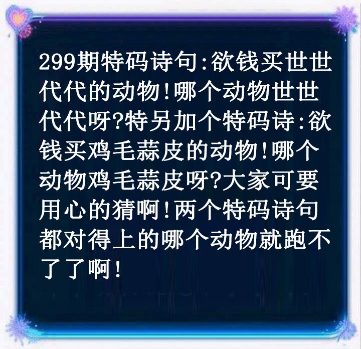 299期开:狗44 今期买鸡羊输尽光, 看中0头3尾全不买 |