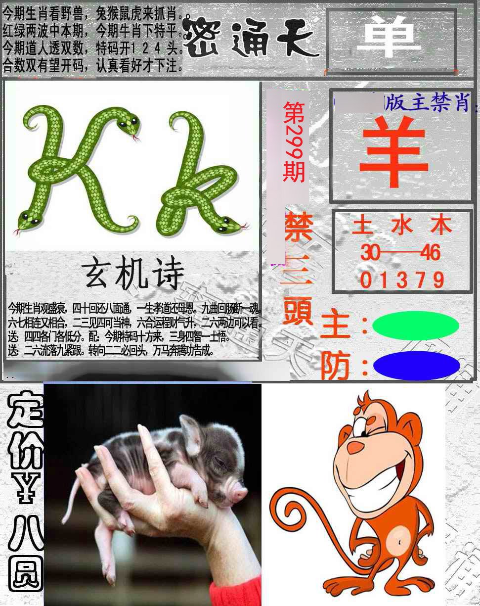 300期开:猪31 今期买羊虎输尽光, 看中3头9尾全不买 |