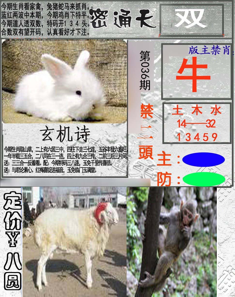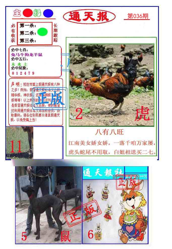 | 036期;【牛羊马鸡鼠蛇虎狗龙】开:?00 |