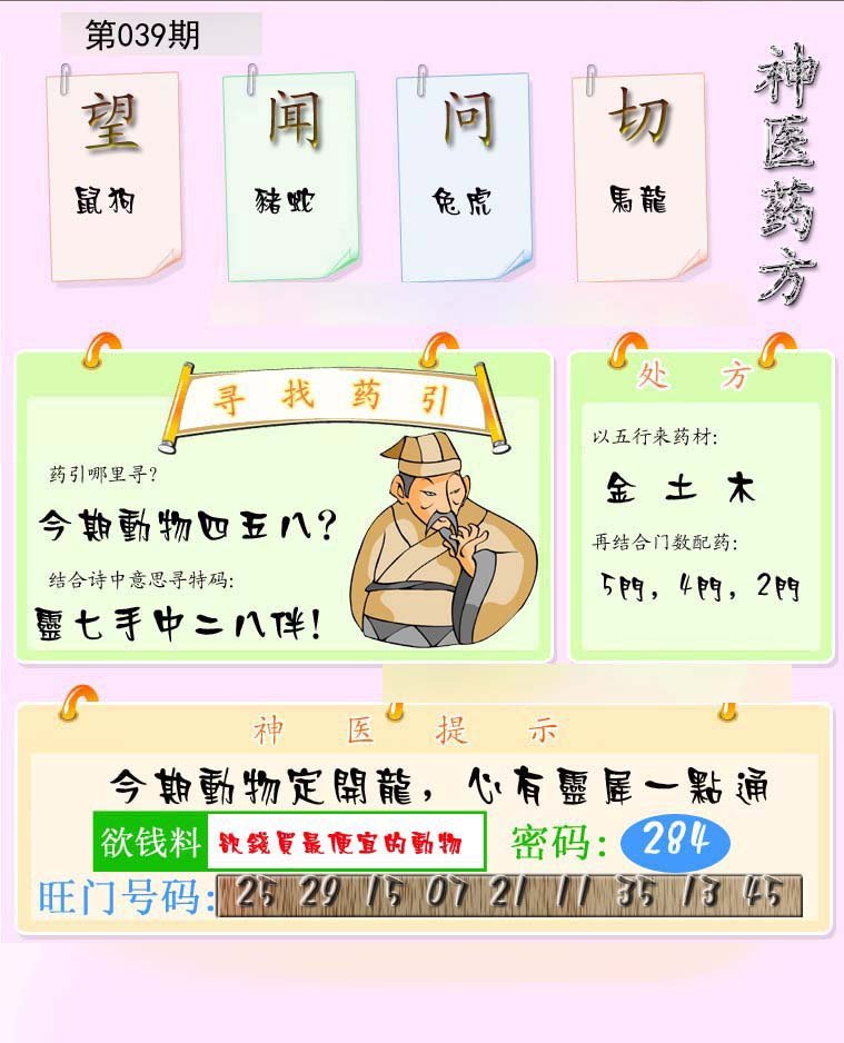 035期金牌⑤码【15 24 20 03 25 】开:羊47 |