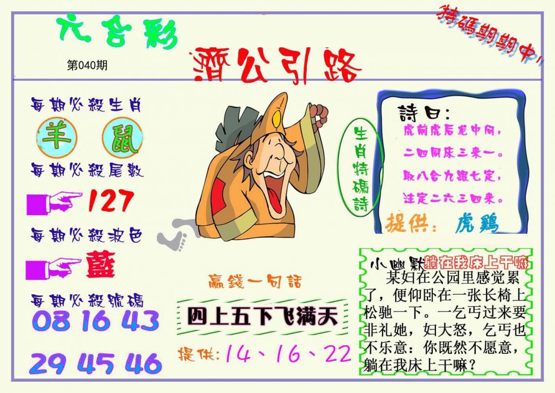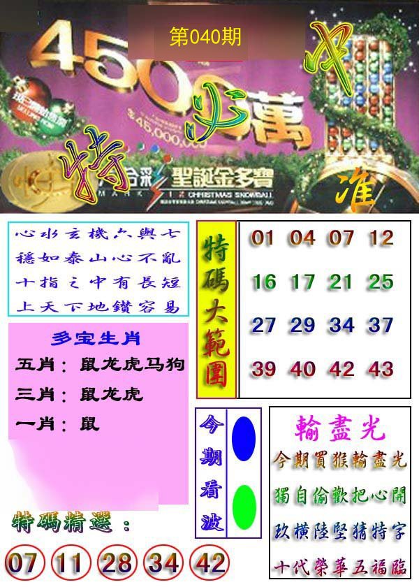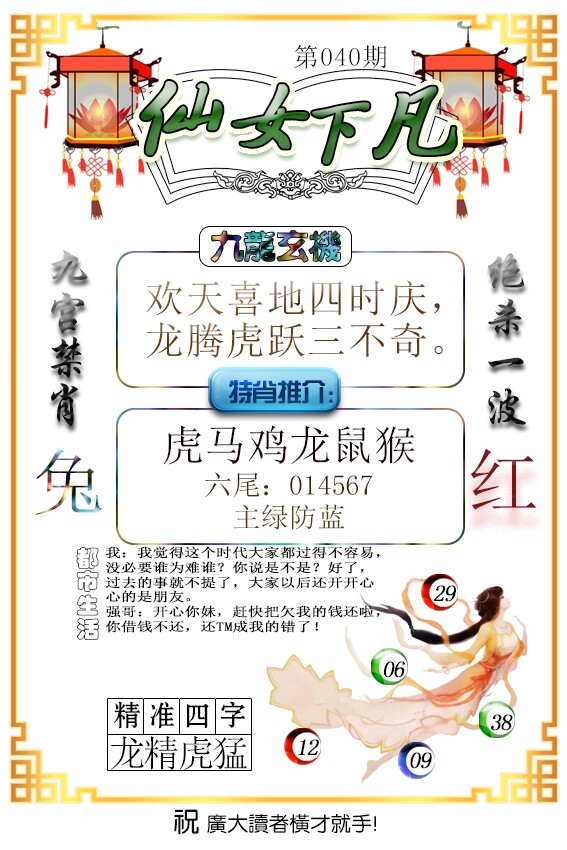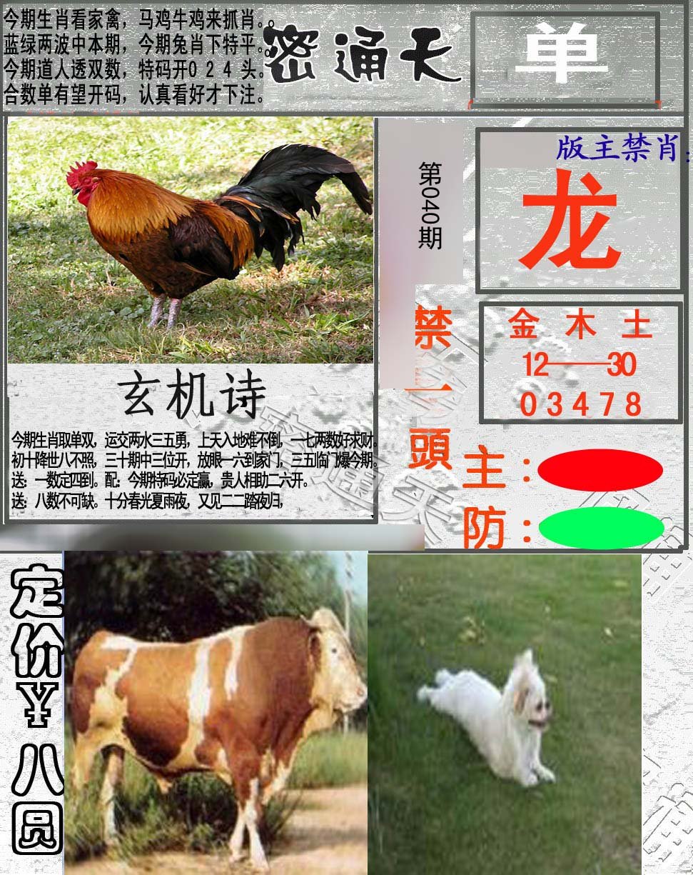 | 030期;绝杀【龙肖】绝杀【6尾】开:虎40 |