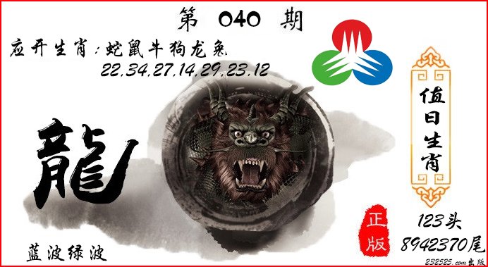 | 034期;平特①肖【龙龙龙】 |