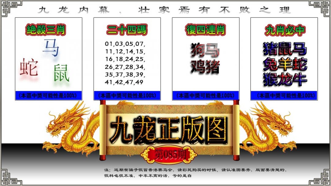 | 085期;平特①肖【蛇蛇蛇】 |