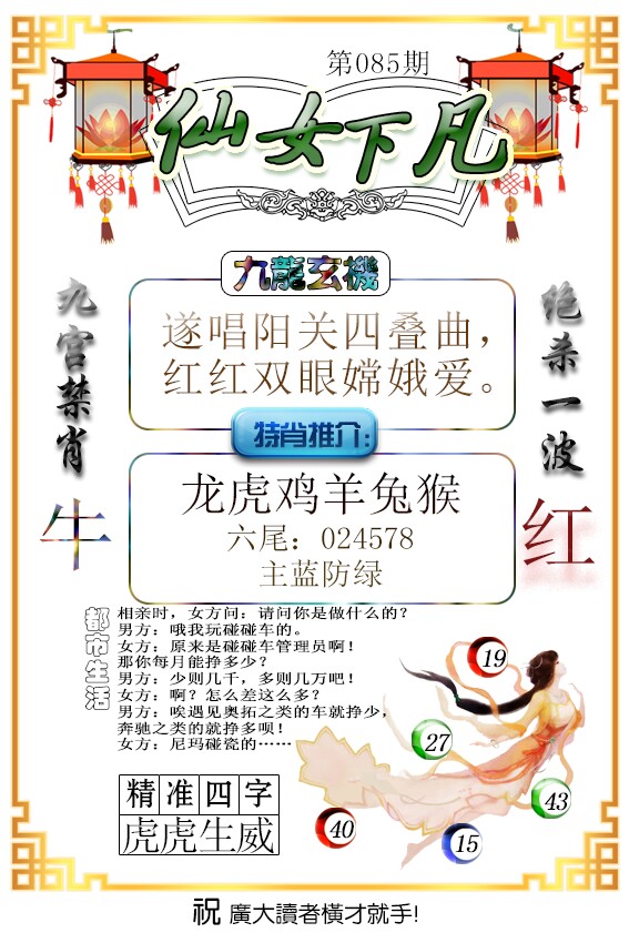 | 083期;绝杀【龙肖】绝杀【4尾】开:虎41 |