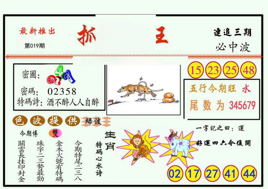 | 012期;绝杀【兔肖】绝杀【2尾】开:猴46 |