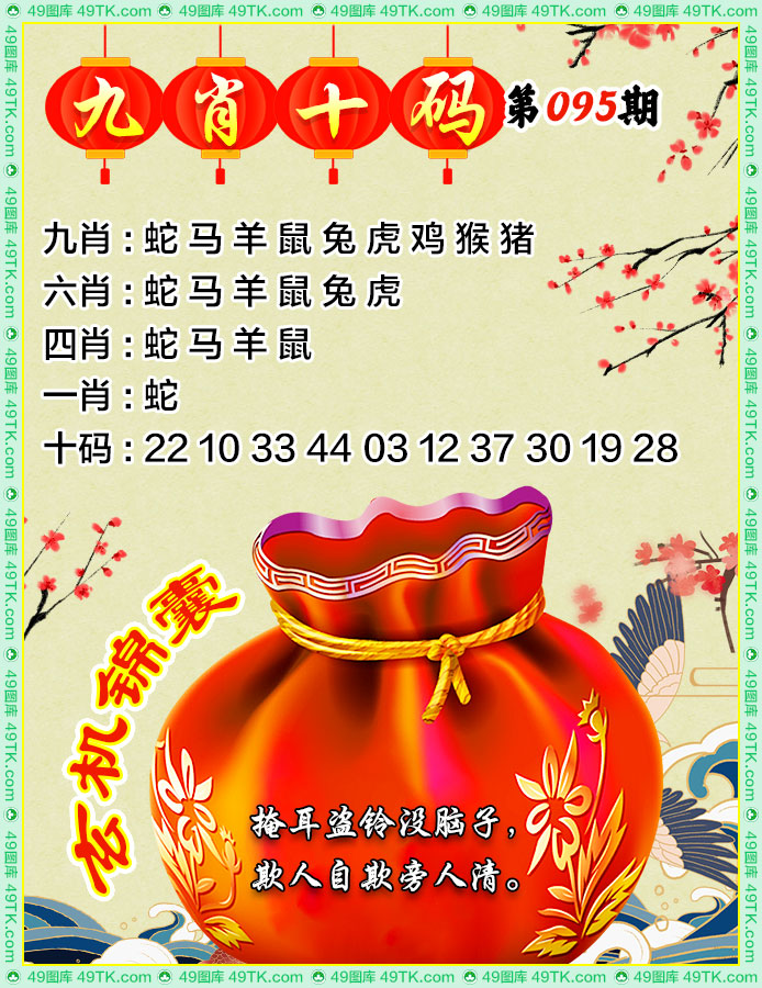 095期开:0 今期买牛虎输尽光, 看中3头2尾全不买 |