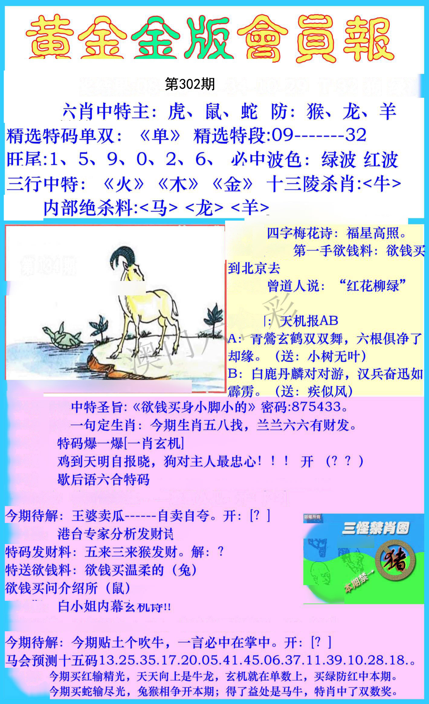 301期金牌⑥肖【羊狗虎牛鸡兔】开:马36 |