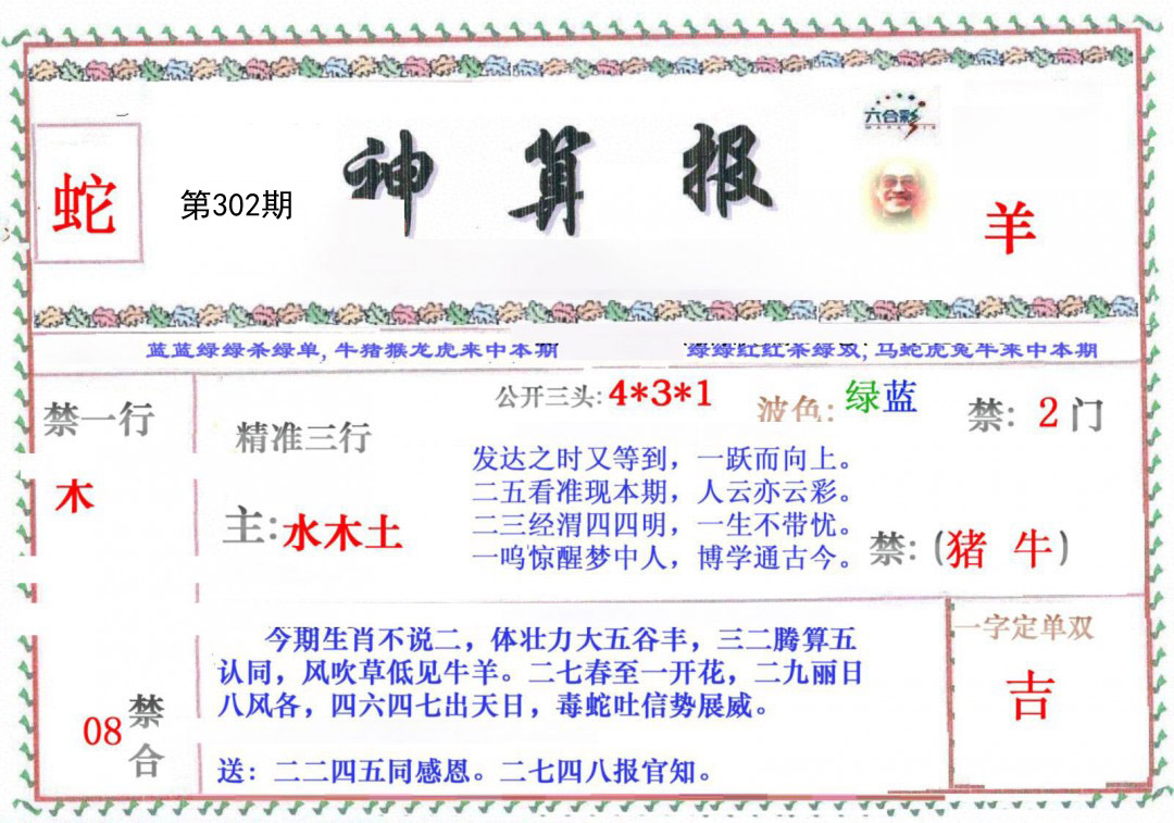 | 293期;绝杀【蓝波】绝杀【1头】开:蛇37 |